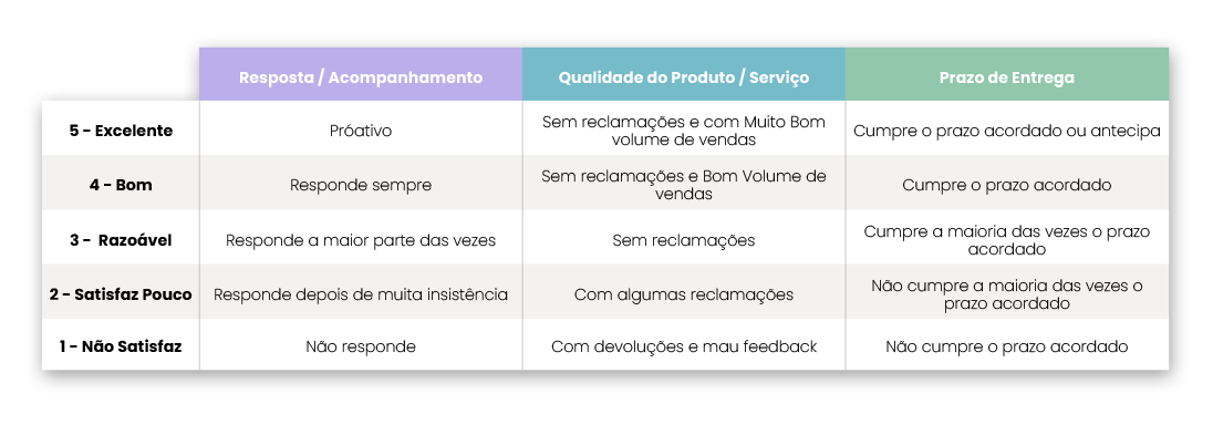 Avaliação de fornecedores